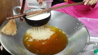 It's fun to make kuih jala (net cake).